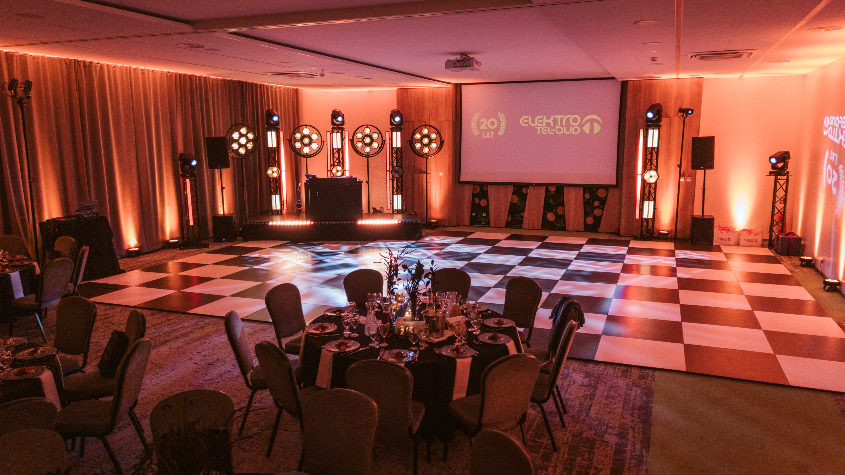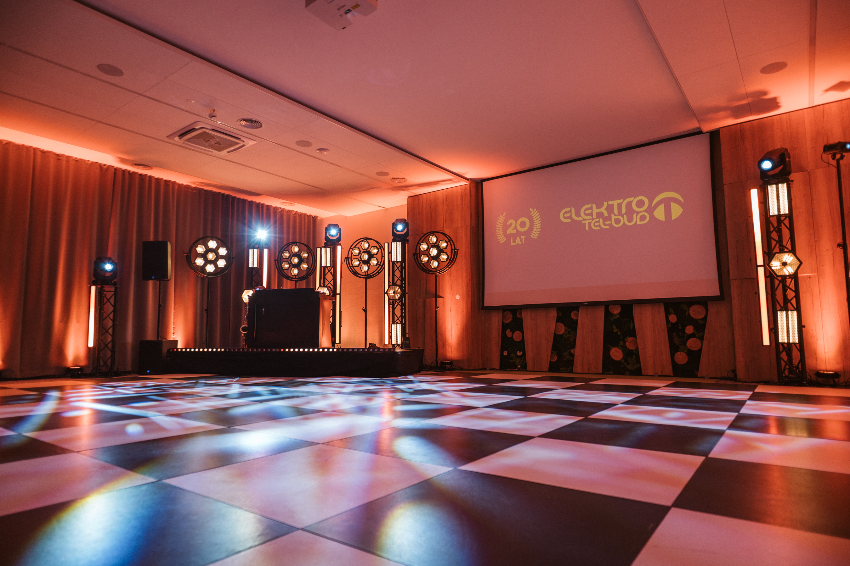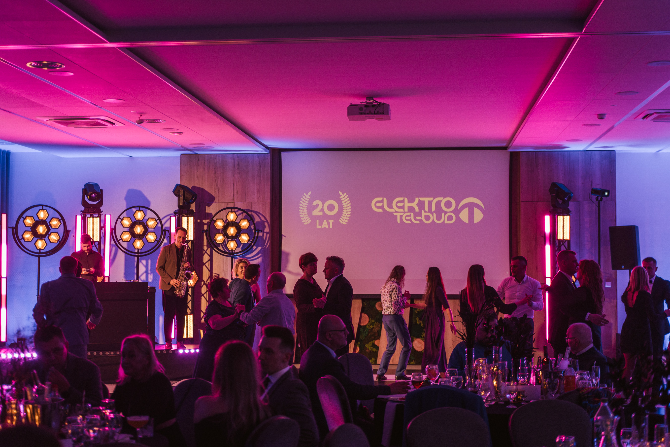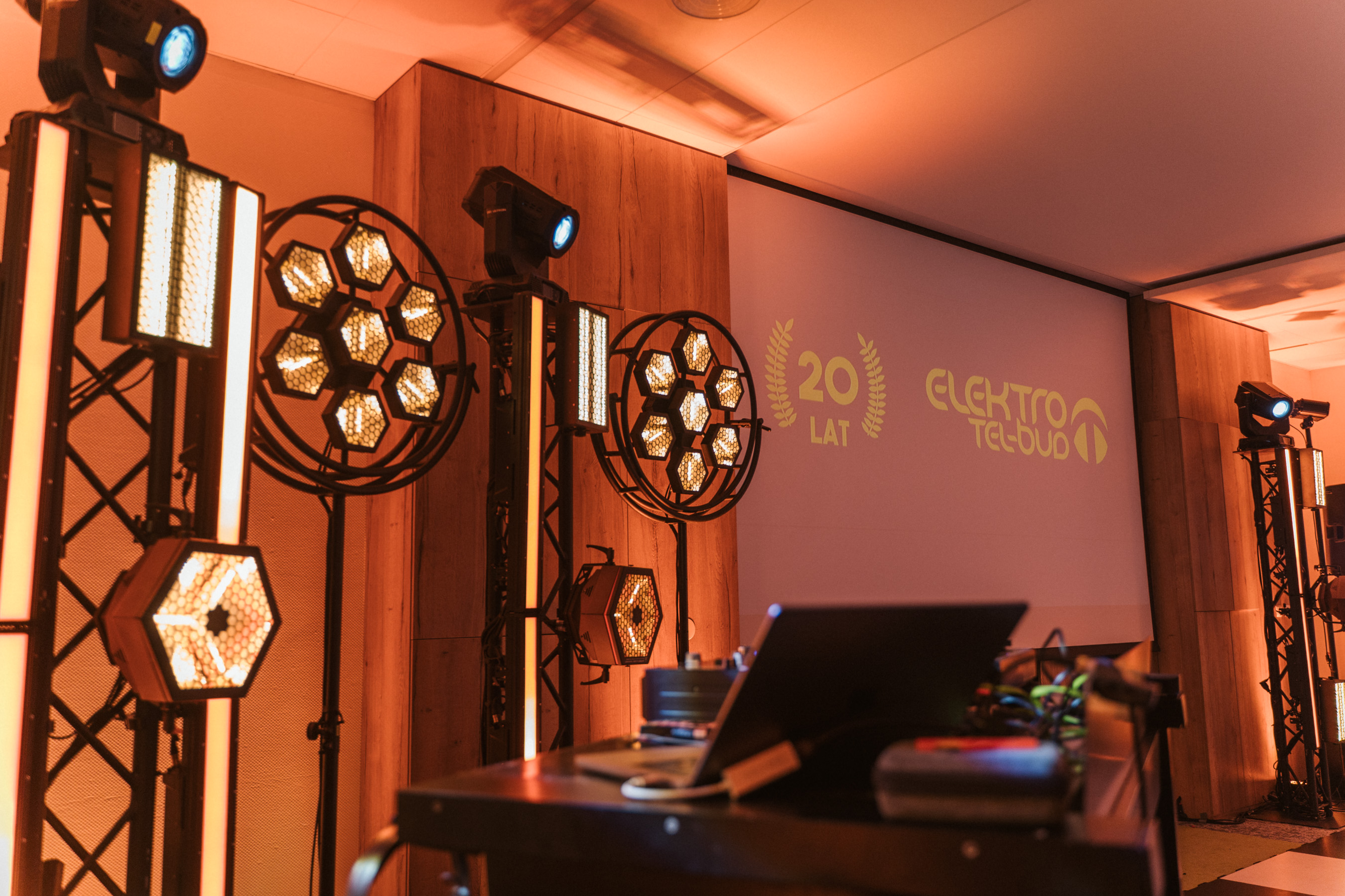 Podczas uroczystego jubileuszu 20-lecia firmy Electro Tel Bud niezwykły klimat wydarzenia podkreśliła starannie zaplanowana oprawa świetlna. Zastosowano profesjonalne oświetlenie sceniczne, które nie tylko wyróżniło główne punkty programu, lecz także stworzyło wyjątkową atmosferę, idealnie dopasowaną do charakteru imprezy.