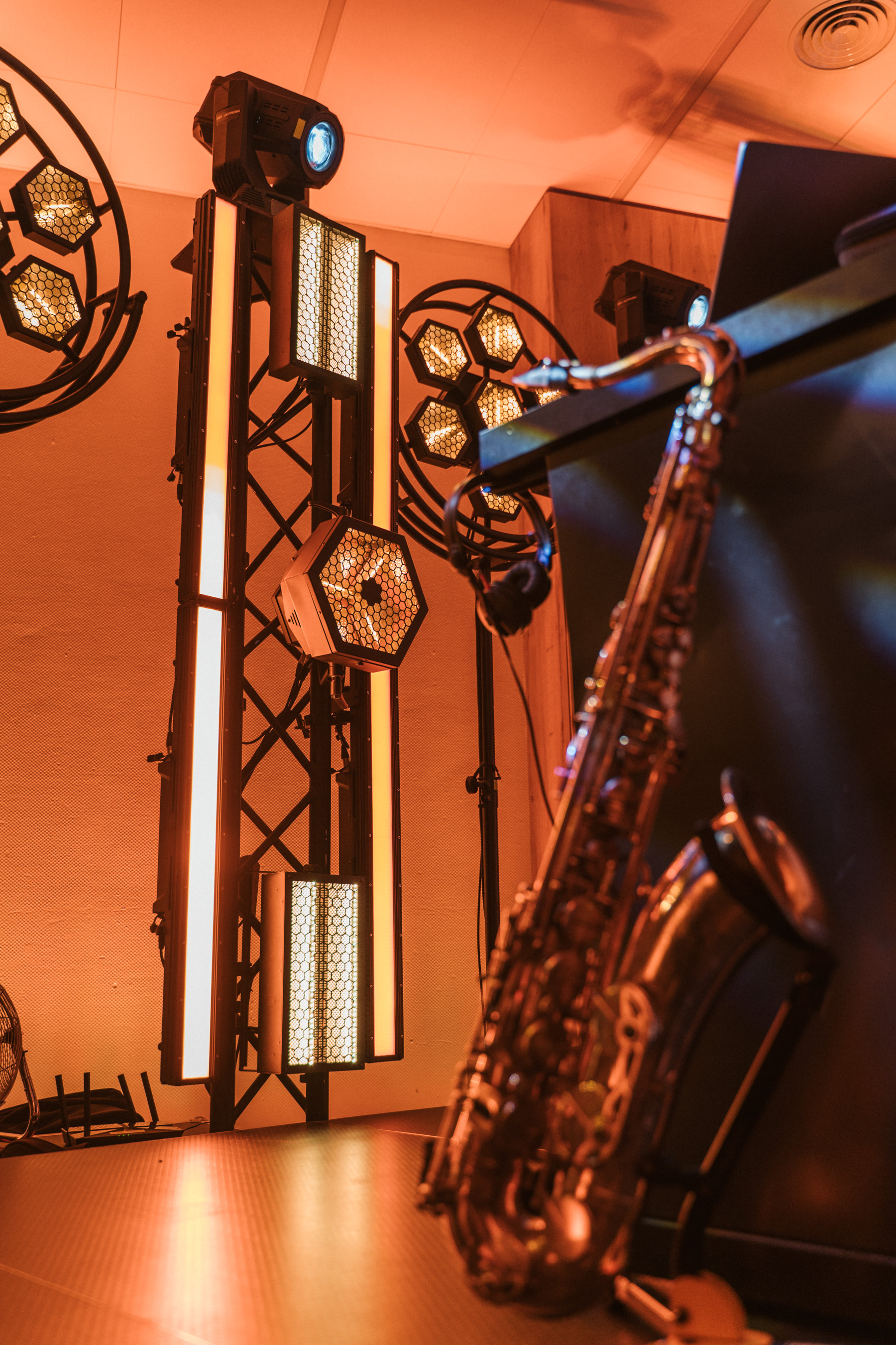 Cała przestrzeń sali została subtelnie udekorowana przy pomocy światła ambientowego, które nadało wnętrzu elegancji i głębi.